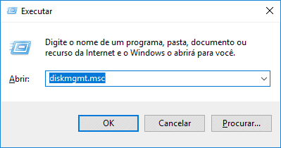 1. Pressione as teclas “Windows+R” para abrir o Executar, digite diskmgmt.msc e clique em “OK”.