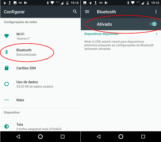 1. Para começar precisamos parear os dispositivos. Essa etapa será necessária apenas na primeira vez, posteriormente você não precisará mais executá-la para transferir os arquivos. Abra o menu de configurações do Android, acesse a opção “Bluetooth” e certifique-se que o Bluetooth está ativado.