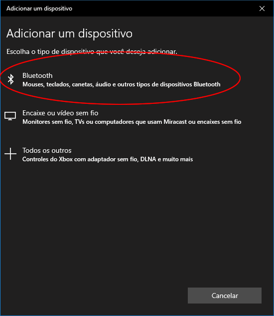4. Selecione a primeira opção “Bluetooth” e ele começará a listar os dispositivos encontrados.