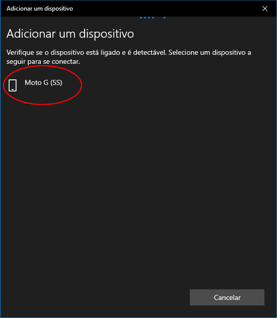5. Tente localizar o seu telefone na lista e selecione-o. Caso não esteja vendo o seu smartphone na lista, abra a tela do celular, verifique se o seu computador está sendo exibido na lista e selecione-o.
