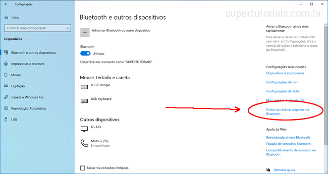 Como enviar arquivos do celular para o PC via Bluetooth: