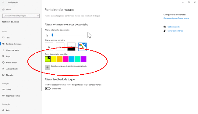 Como trocar a cor do ponteiro do mouse no Windows 10:
