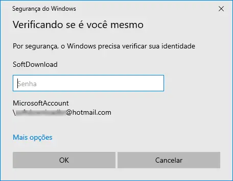 4. Ele solicitará que você insira a senha da conta Microsoft para confirmar a identidade.