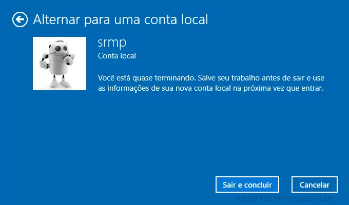 6. Pronto, agora basta clicar em “Sair e concluir” para terminar a conversão para conta local.