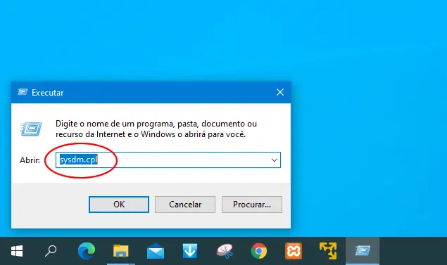 1. Clique com o botão direito do mouse no menu Iniciar e selecione a opção “Executar” ou pressione as teclas “Windows + R”, digite sysdm.cpl e clique em “OK”. Você também pode abrir o “Explorador de Arquivos”, clicar com o botão direito em “Este Computador” e selecionar a opção “Propriedades”.