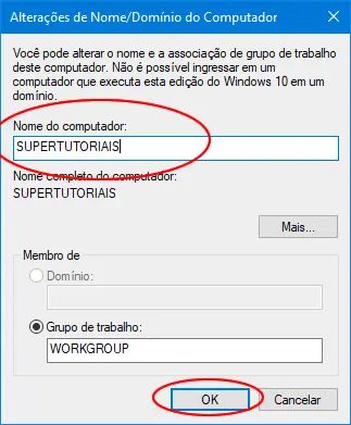 3. Digite o nome desejado no campo “Nome do computador” e clique em “OK”.