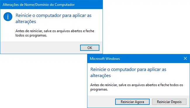 4. Por fim, para concluir a alteração, o Windows 10 precisa ser reiniciado. Salve e feche os arquivos abertos no computador e, em seguida, clique em “OK” e depois em “Reiniciar agora” para reiniciá-lo.