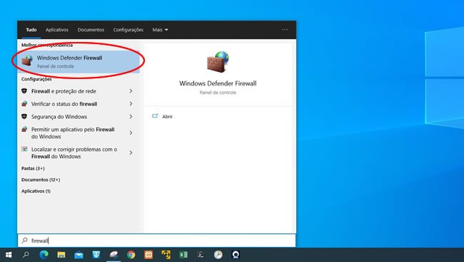 1. Para corrigir isso, pesquise por firewall no Menu Iniciar e abra o Windows Defender.