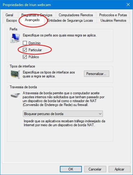Em alguns casos, pode ser necessário configurar uma “regra” no firewall do Windows para que ele consiga estabelecer a conexão. Isso acontece porque o Iriun WebCam coloca uma regra no firewall do Windows para rede pública e se a rede estiver configurada como particular, ele não irá funcionar.