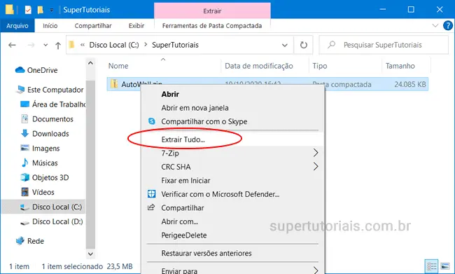 2. Depois de baixar o programa, clique com o botão direito no arquivo “AutoWall.zip” e selecione a opção “Extrair Tudo…” para extrair todo o conteúdo do arquivo ZIP para uma pasta no computador.