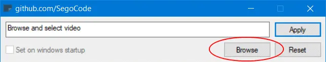4. Uma vez aberto o programa, clique no botão “Browse” e selecione o arquivo GIF que deseja usar como papel de parede. Para encontrar papéis de parede do tamanho ideal para sua tela, você pode pesquisar no Google “gif wallpaper resolução da tela”, como por exemplo, gif wallpaper 1920×1080.