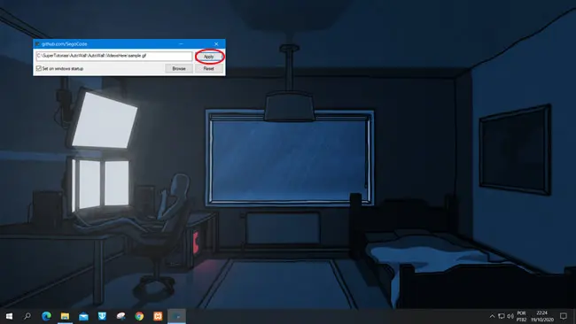 5. Agora, clique no botão “Apply” e o papel de parede animado será adicionado no Windows. Você pode fechar o programa e o papel de parede irá continuar ativo na área de trabalho do computador.
