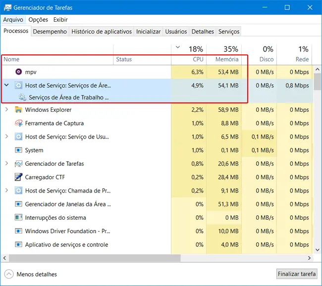 7. Por último, observe que o programa consome recursos do sistema para exibir o papel de parede animado. Por exemplo, um GIF animado pode consumir CPU e mais de 100MB de memória RAM.