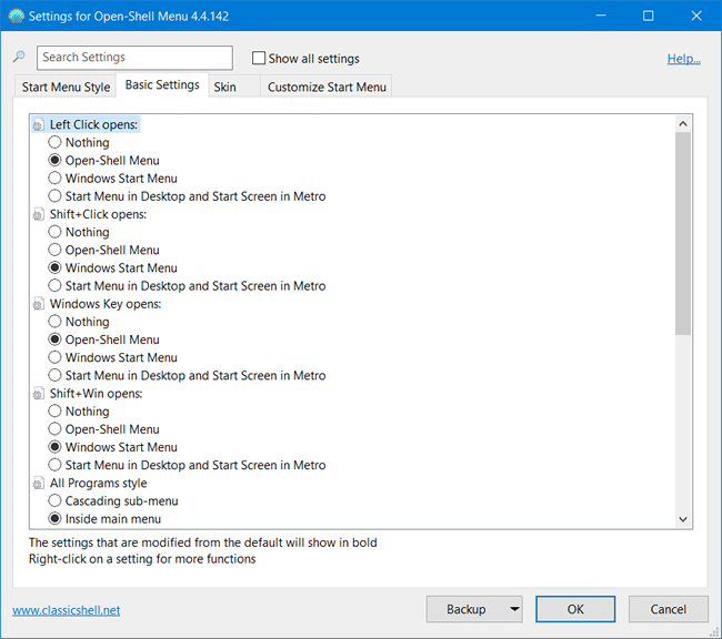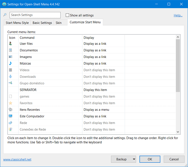 5. Isso é tudo o que você precisa fazer para substituir o Menu Iniciar do Windows 10, porém, na guia “Basic Settings” você pode ajustar várias opções, como por exemplo, o que fazer quando você clicar com o botão esquerdo no menu, pressionar a tecla Windows, como listar os programas e muito mais.