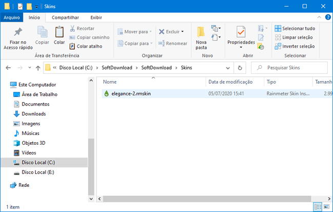 1. Baixe o skin desejado e clique duas vezes no arquivo .rmskin para iniciar a sua instalação.