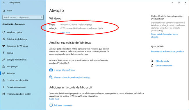 O Windows 10 usa a ativação para verificar se você tem uma cópia genuína do Windows 10 em seu computador e se a mesma “chave de produto” do Windows 10 não foi usada em outros dispositivos.