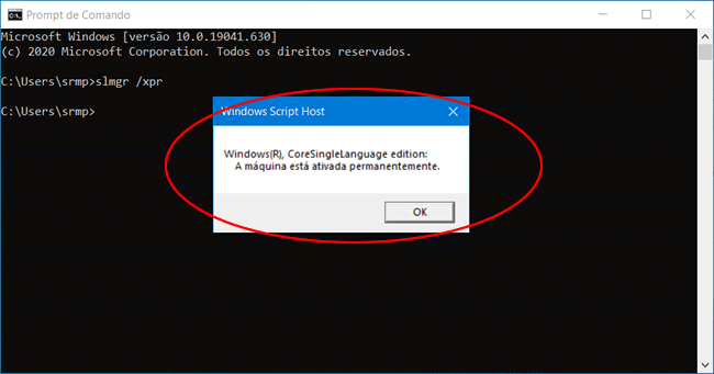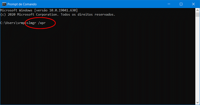 1. Abra o Prompt de Comando e digite o comando slmgr /xpr