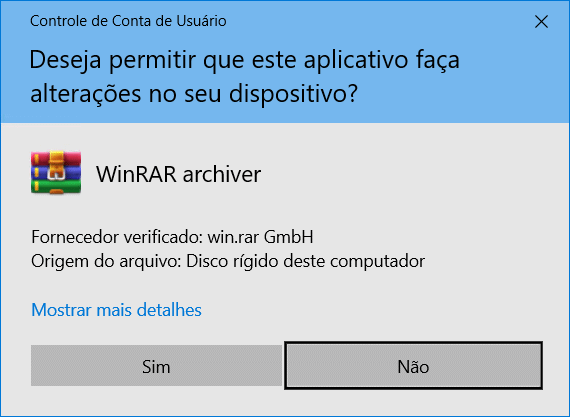 2. Uma vez concluído o download clique no arquivo baixado para executar o arquivo de instalação e depois em “Sim” para permitir a execução do arquivo de instalação do WinRAR em seu computador.