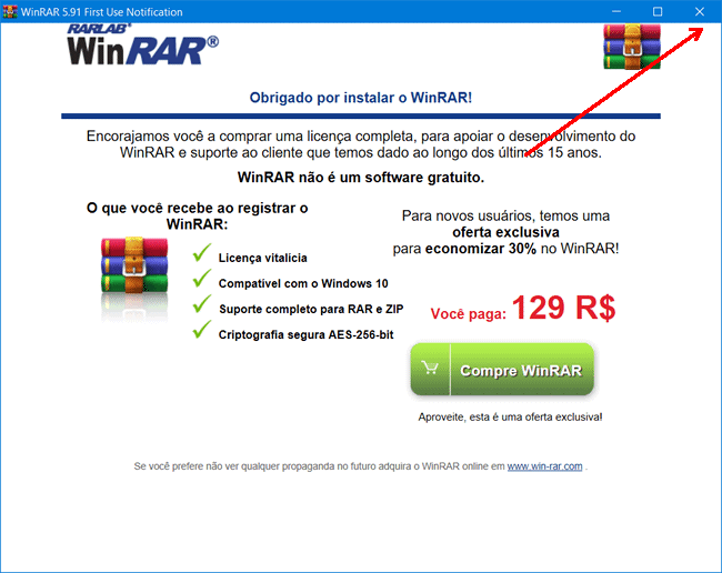 5. Ele exibirá uma mensagem informando que não é gratuito, mas basta fechar a janela.