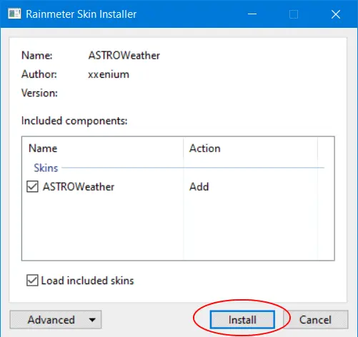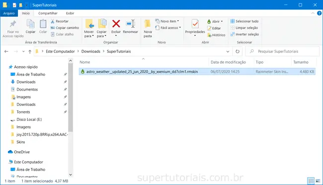 3. Clique duas vezes no arquivo do AstroWeather (.rmskin) para iniciar a sua instalação.